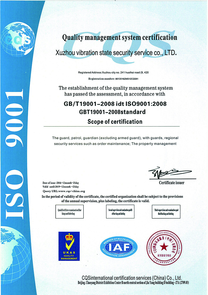 质量体系认证书